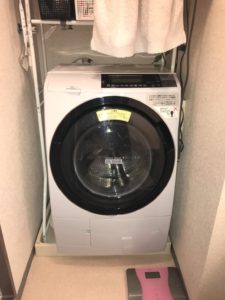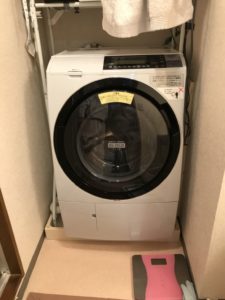 一旦、洗濯機を移動させて作業の準備を行います。
